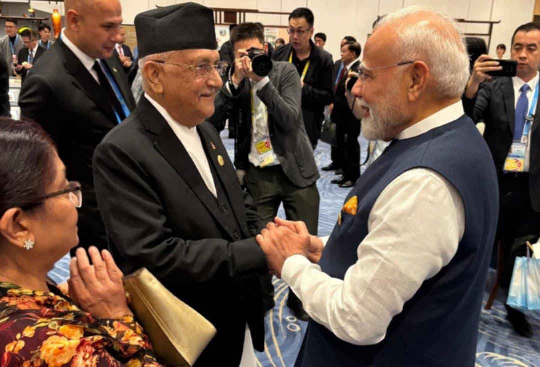 प्रधानमन्त्री ओली र मोदीबीच यही भेटवार्ता नै साइडलाईन भेटवार्ता हो वा होईन भन्ने खुलेको छैन । तर, प्रधानमन्त्री ओलीले भोलि (सोमबा) रूसी राष्ट्रपति भ्लादिमिर